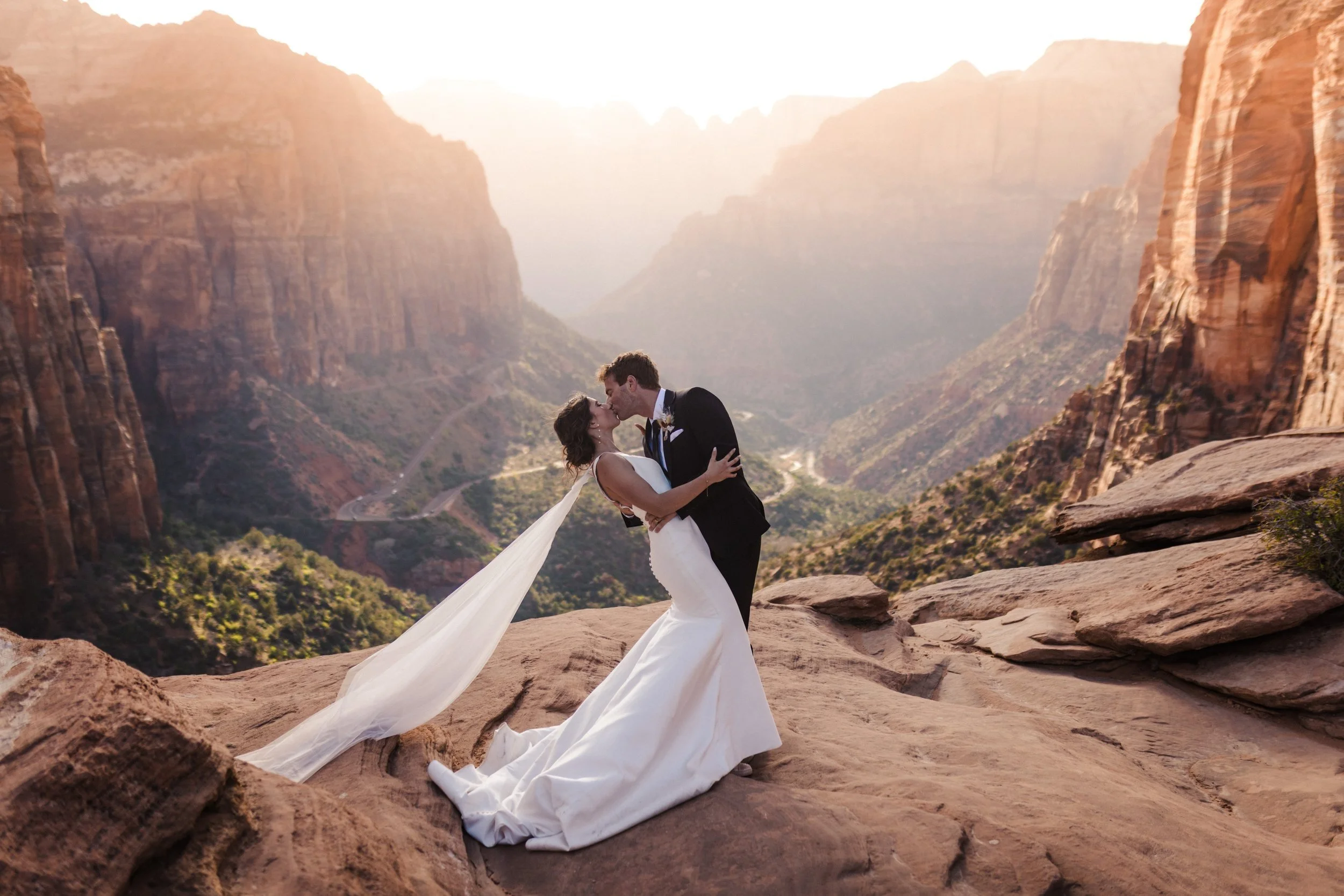 Danielle and Matt exchanged vows amongst the towering red cliffs of Zion National Park.